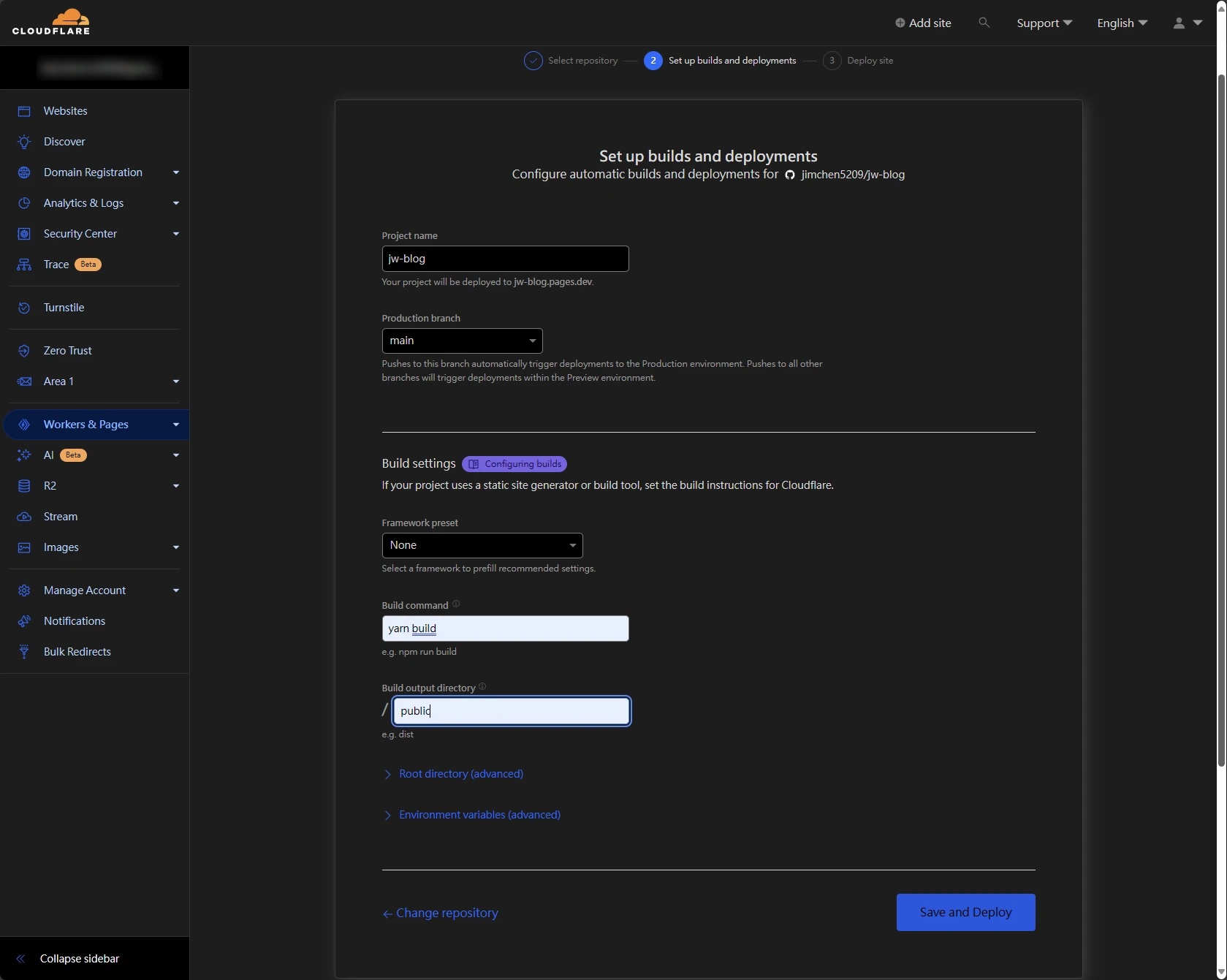 yarn build,Build output directory 填上public後,然後點選Save and Deploy